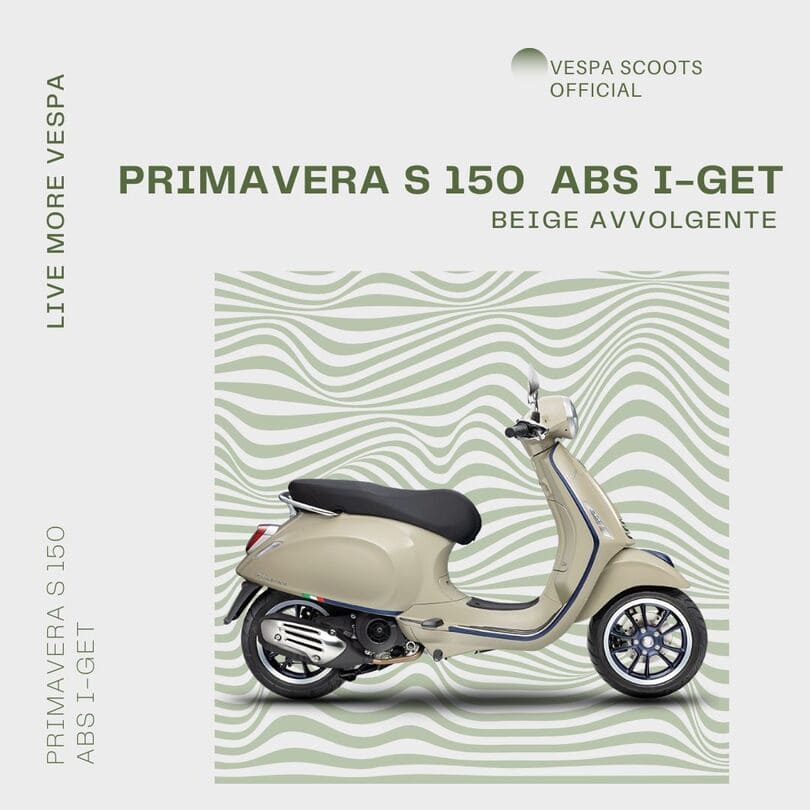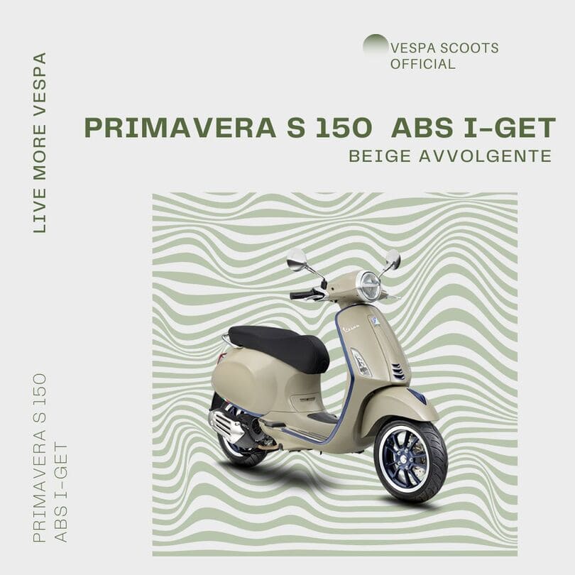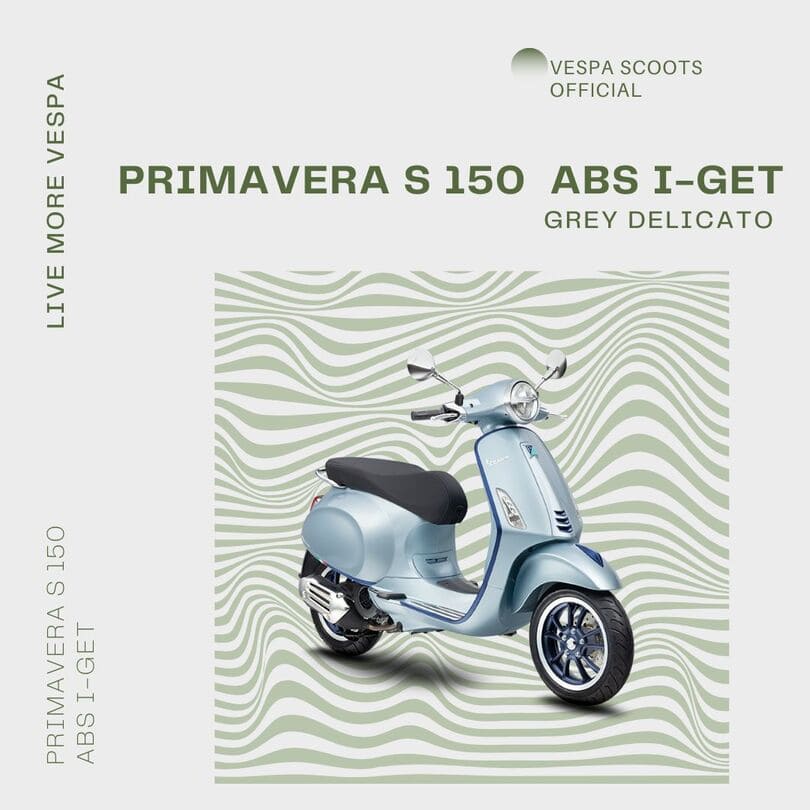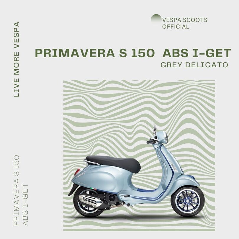 Vespa Primavera S – Produk ini istimewa, karena termasuk edisi khusus dan memiliki berbagai detail yang berbeda dibanding Primavera standar. Alhasil, penampilan motor ini terlihat jauh elegan. Terutama berkat penambahan aksen abu-abu di beberapa bagian bodinya.